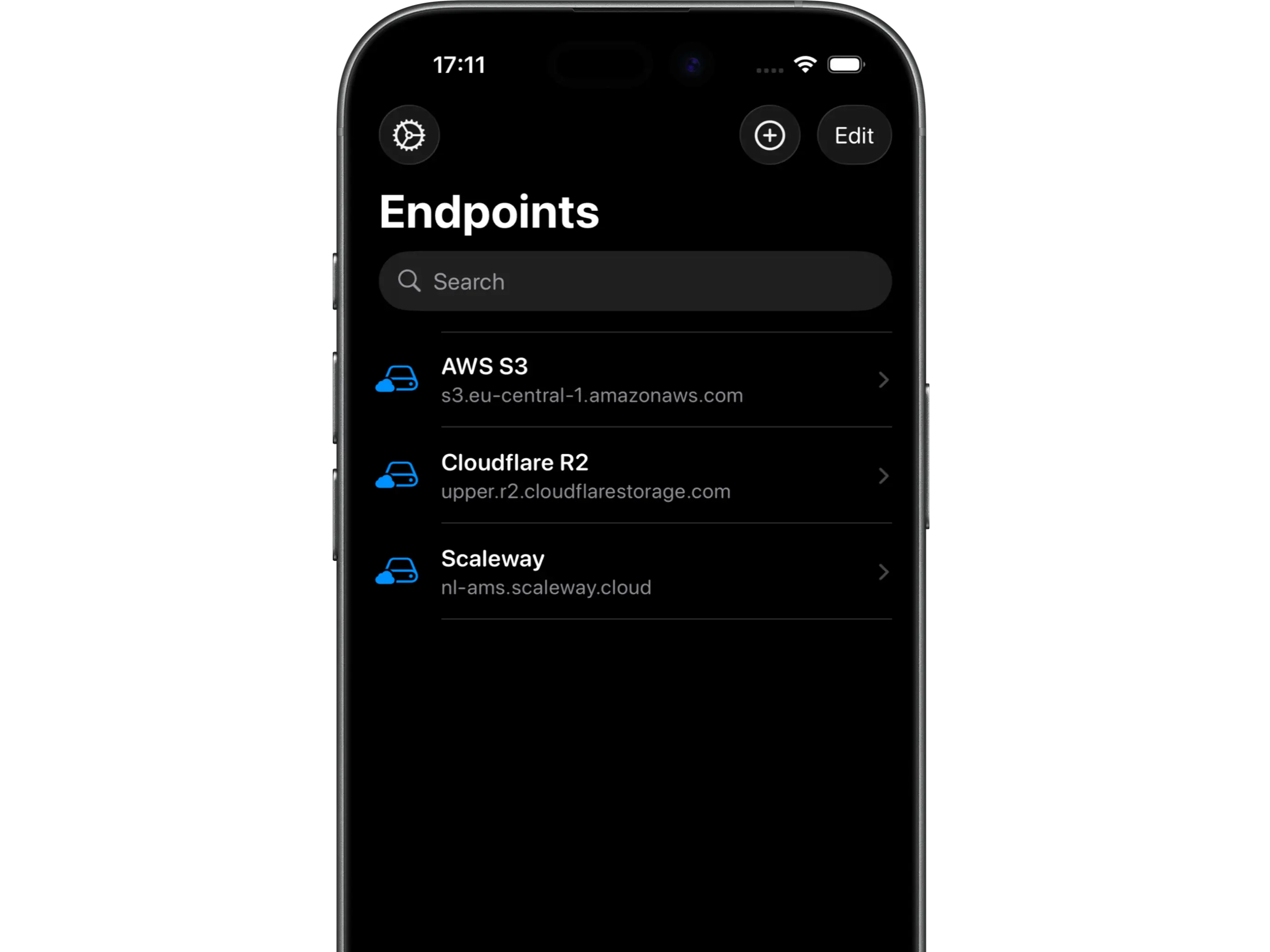 Upper keeps your credentials safe. Access keys and other sensitive information are securely stored in your device’s Keychain and, if enabled, automatically synced via iCloud Keychain. Your configured endpoints stay in sync across devices — securely and effortlessly.